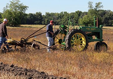 October 12, 1895. The George W. Thomas farm, north of Big Rock, was host to the first Big Rock Plowing Match. The day was complete with dinner and nine plowmen, actually eight as one was ruled out because he used two instead of three horses. There were classes for gang plows, riding plows and walking plows, and the sweepstakes winner was Benjamin Thomas. And so it began and so it continues. By the turn of the 20th century there was a plowing match every weekend in September: Big Rock, Lily Lake, Troy and Wheatland. Today, only the Big Rock Plowing Match remains.