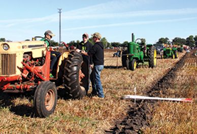 Bill Brickert and Craig Thomas, Association Board members, coordinate the plowing competition from preparing the field to awarding the trophies. Bill and Craig plow the scratch furrows to define the land, one furrow at each end of the field, indicating the start and the end point of each “land” section. A numbered marker and two stakes are placed, one at each end of the land.